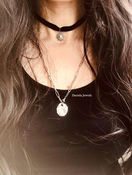 Ras de cou Ronnie en velours avec pendentif soleil argenté