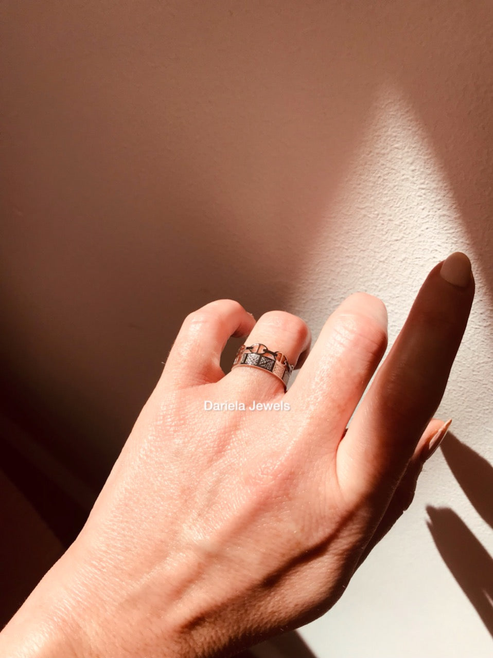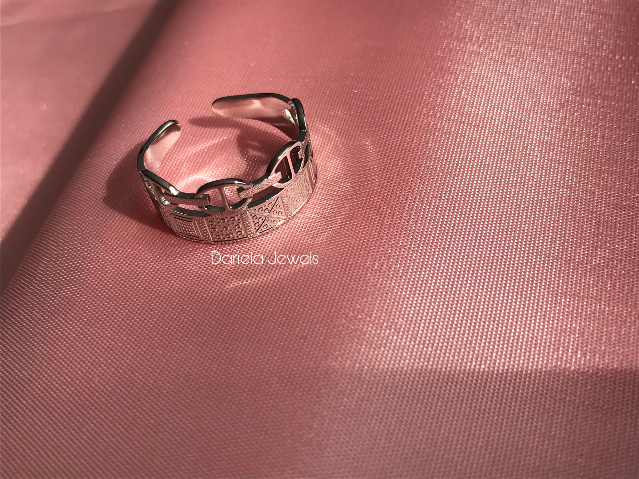 La bague Arabella est en acier inoxydable et est ajustable. Elle résiste à l’eau.