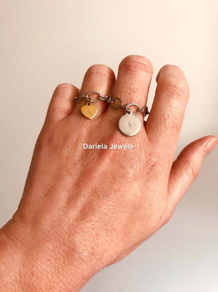 Duo de bagues chaînettes initiales Oscar et Roma.