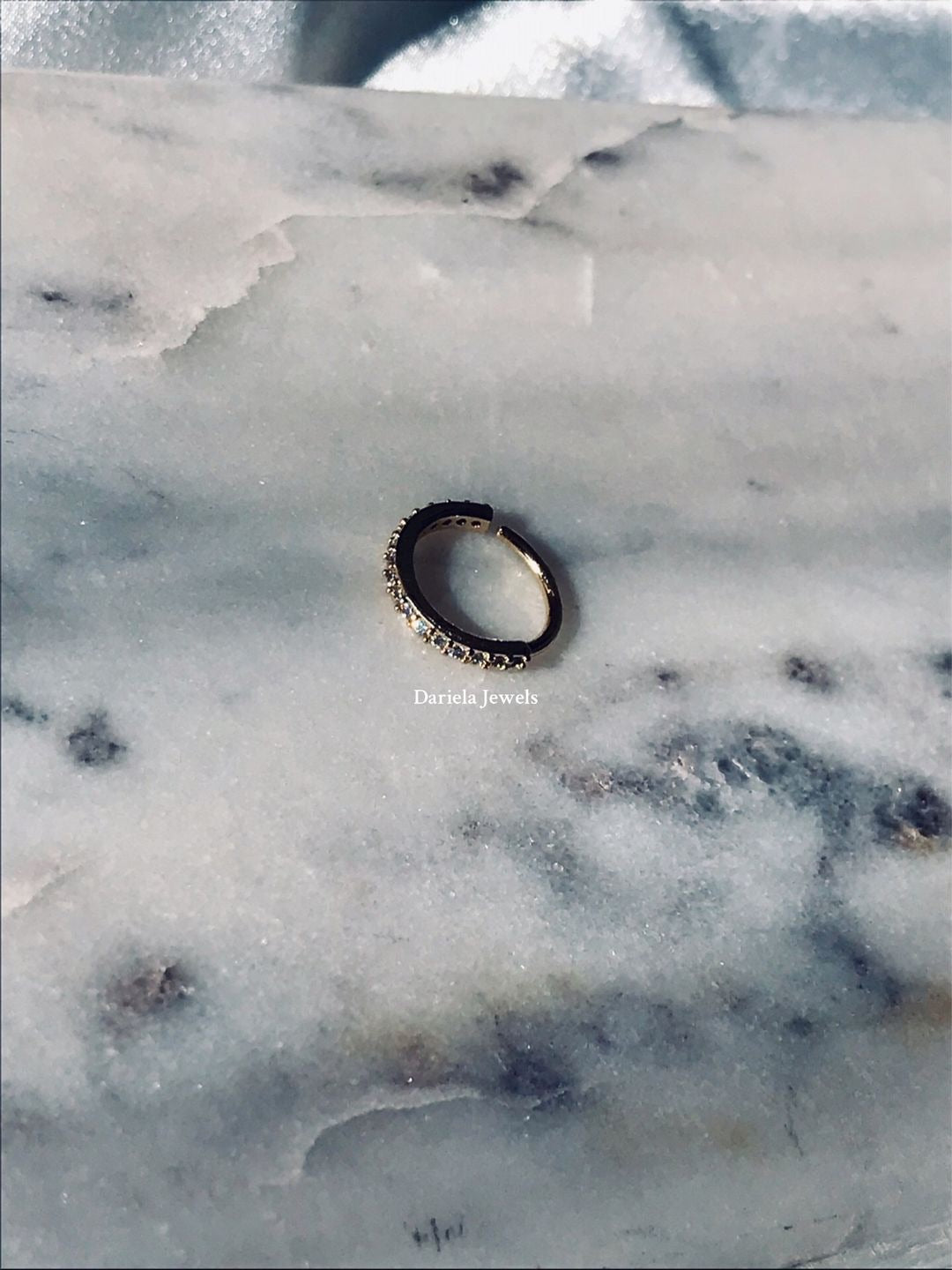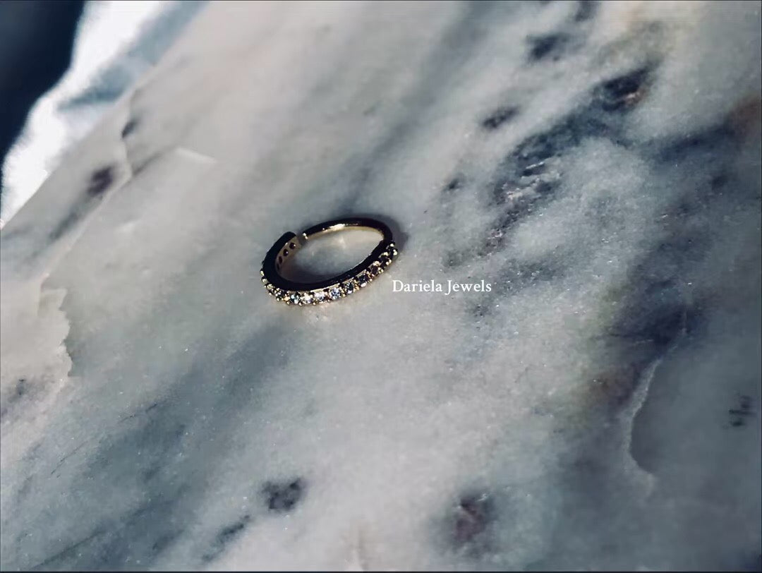 Polyvalent, cet anneau peut être porté sur différentes zones de l’oreille — hélix, anti-hélix, mid hélix, tragus, lobe ou daith — pour un look élégant et lumineux, qu’il soit porté seul ou en accumulation.