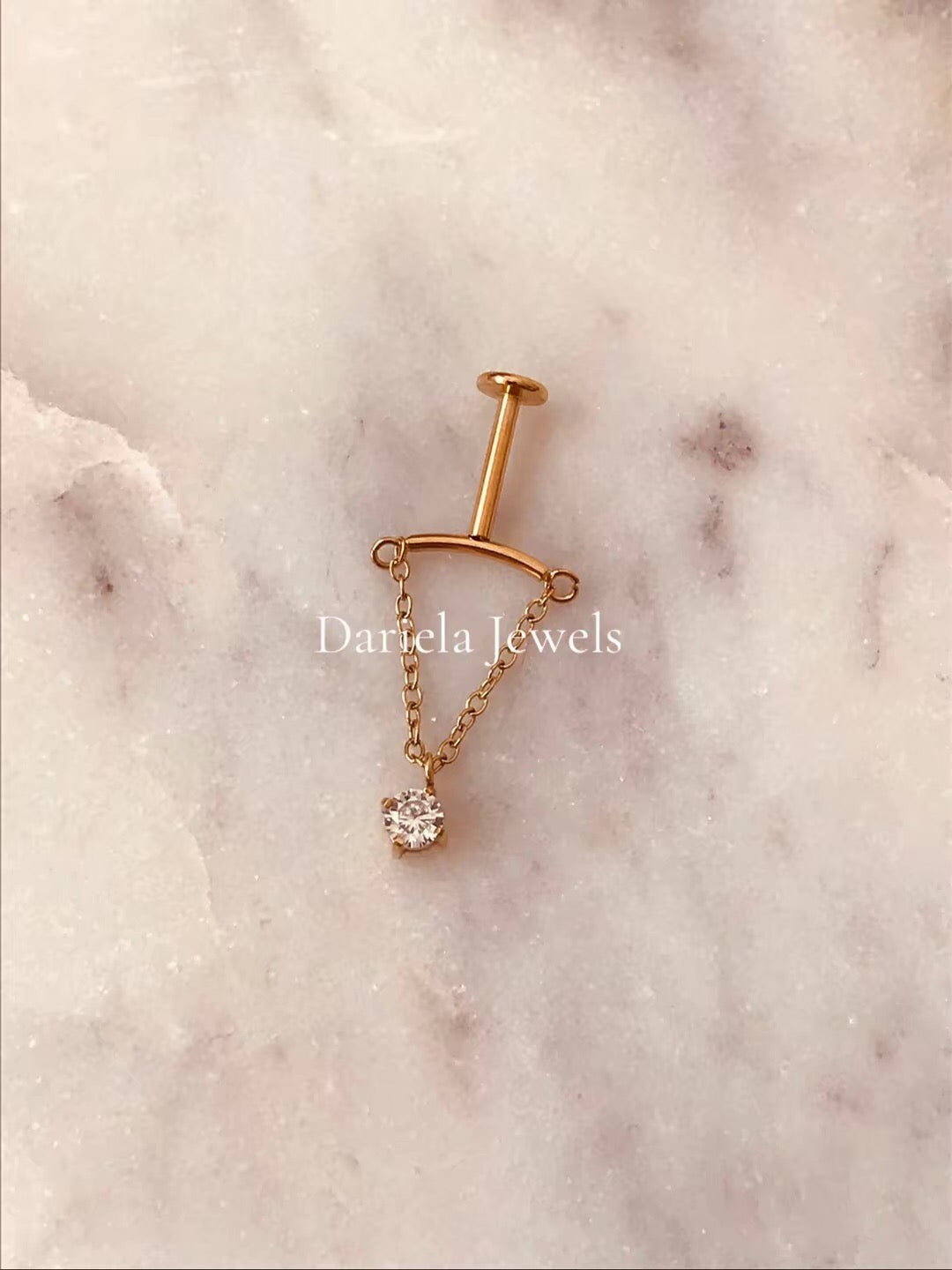 Sublimez votre oreille avec le piercing chaîne Audrey, un bijou tendance en acier inoxydable conçu pour apporter élégance et brillance à votre look. Sa chaîne pendante délicate est ornée d’un oxyde de zirconium scintillant, reliée à une tige de type labret plat pour un confort optimal et une tenue parfaite.