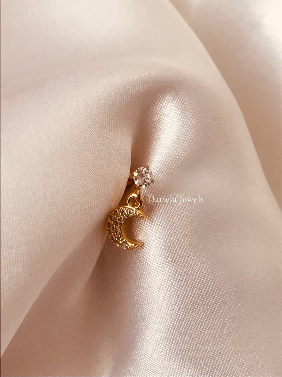 Ajoutez une touche céleste à votre style avec le Piercing Deluna, conçu spécialement pour les flat et lobes. Ce bijou unique présente une lune pendante ornée d'oxydes de zirconium scintillants, apportant élégance et raffinement à votre oreille.